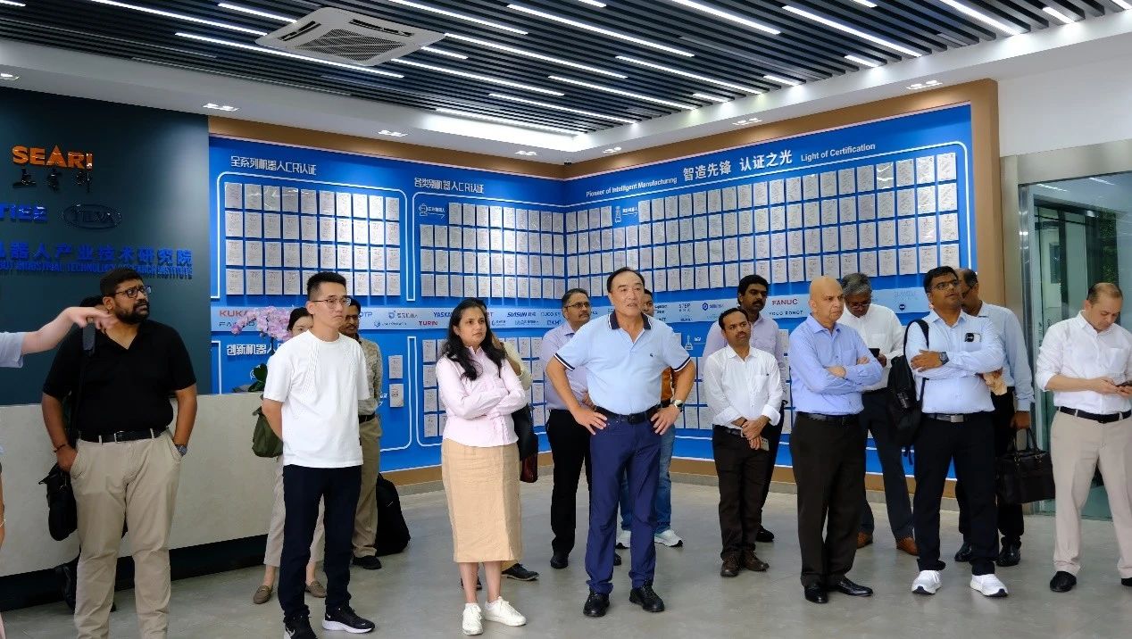 7月24日,印度塔塔集团(Tata Group)代表团一行到访东升国际(中国)机器人有限公司官网(以下简称”上研院“),实地参观机器人检测试验室、智能创新研发实验室、具身智能机器人数据训练测评试验室,重点了解国家机器人检测与评定中心(总部)职能、行业标准制定与检测认证服务等工作进展,并就中国机器人认证(以下简称”CR认证”)体系及国际互认机制展开深入交流,上研院副院长周梅杰热情接待。