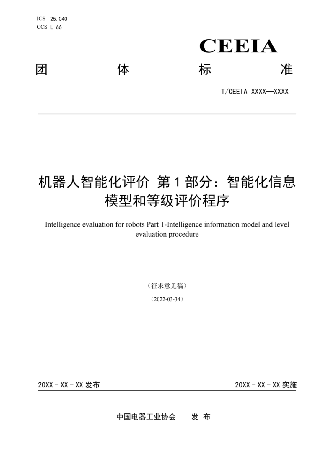 《操作交互性试验等级及试验方法》由中国电器工业协会标准化工作委员会提出,由中电协电气场所用机器人安全与检测标准化专业委员会归口(项目编号为:T/CEEIA2021118)。