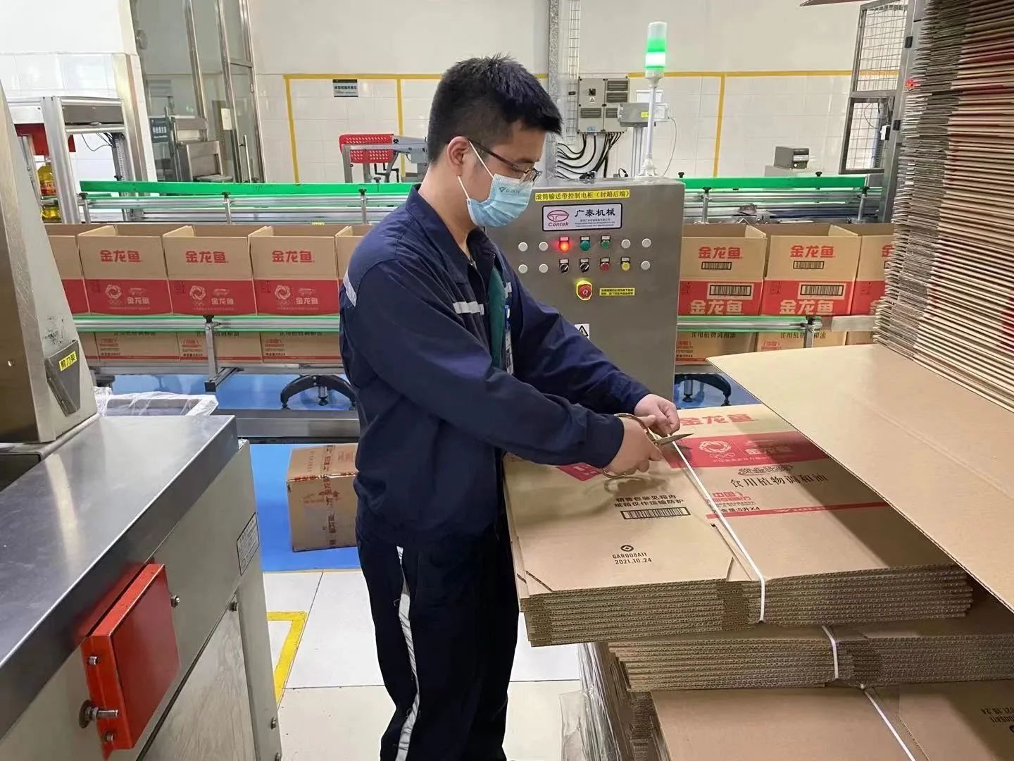 该工作站已在益海嘉里集团多个工厂使用,为客户打通了工厂全自动生产的最后一公里,填补了开箱机上料拆带的一站式日夜连续生产的行业空白。